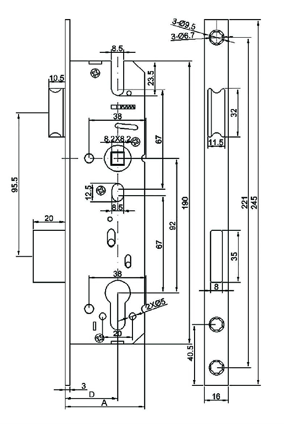Замок Elementis с защелкой 9235/PZ/F16/35/92/8, серебро